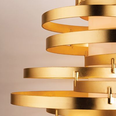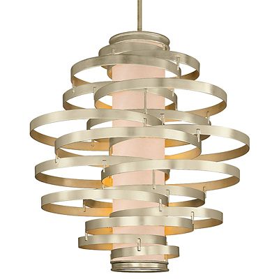 Corbett lighting vertigo led pendant light ylighting com. This pendant light from corbett lighting offers energy and modern style to your living spaces. A modern showpiece light for home or commercial spaces, it showcases an asymmetric collage of circular rings wrapped around a. Aerial and graphic, it fills large volumes as well as small ones, where it creates intimate space. Iron frame with fiberglass shade.